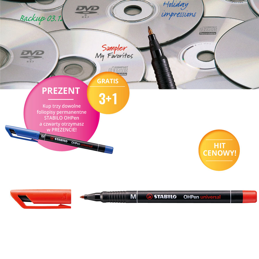 jm.: szt kup trzy dowolne foliopisy permanentne STABILO OHPen a czwarty otrzymasz w PREZENCIE!