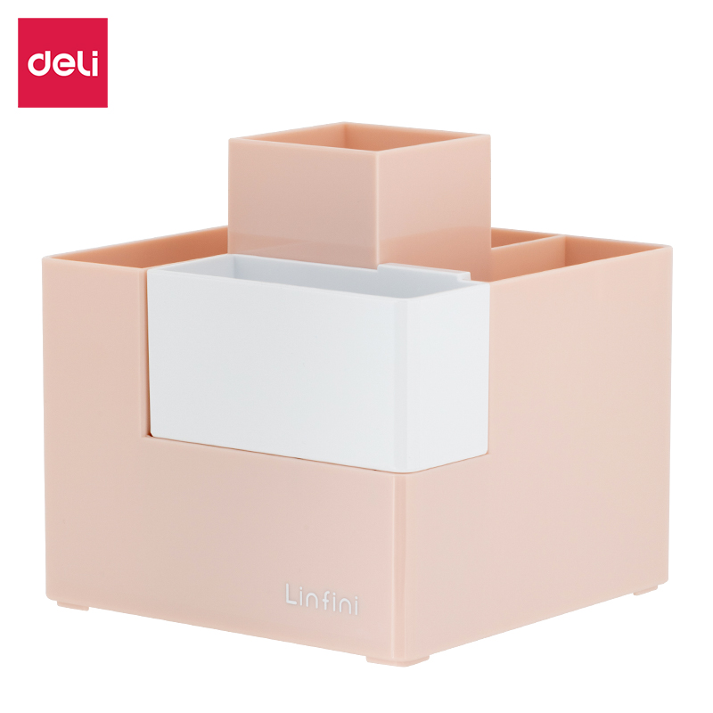 - pojemniczka na drobne akcesoria biurowe (np. spinacze, klipy, pinezki, gumkę do ścierania, grafity ołówkowe) z zasuwaną/wyjmowaną przykrywką, na której znajduje się 125 samoprzylepnych zakładek z transparentnej folii PP o wymiarach 45x12mm (po 25 zakładek w 5 neonowych kolorach: pomarańczowy, różowy, żółty, zielony, niebieski)
