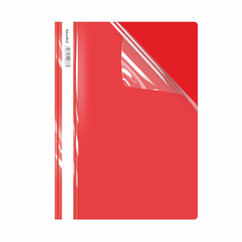 Elegancki skoroszyt wykonany z PVC. Na przedniej okładce przezroczysta kieszeń, która umożliwia włożenie strony tytułowej. Tylna okładka jest szara, grzbiet skoroszytu kolorowy.