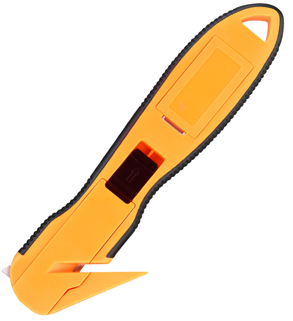 nóż biurowy do rozcinania różnych materiałów wysuwane 7-częściowe ostrze z możliwością odłamywania stępionych części blokada unieruchamiająca ostrze obudowa wykonana z polistyrenu (żółte elementy) i ABS'u (niebieskie elementy) ostrze wykonane ze stali hartowanej szerokość ostrza: 18mm długość ostrza: 100mm kolor niebiesko-żółty