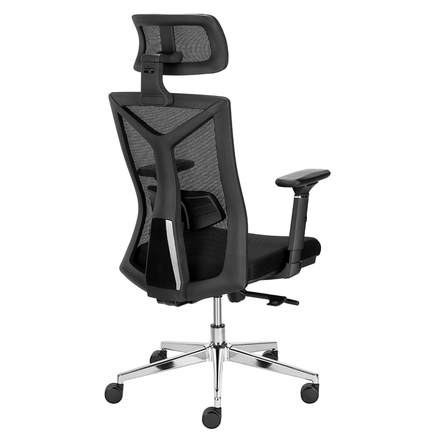 - OPARCIE I SIEDZISKO: regulacja wysokości oparcia, oparcie tapicerowane elastyczną siatką, dopasowującą się do pleców użytkownika natomiast siedzisko tapicerowane tkaniną i wytrzymałą pianką wtryskową, odporną na odkształcenia