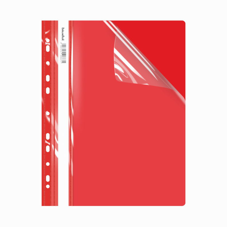 Skoroszyt twardy A4 Biurfol wykonany jest z wytrzymałej folii PVC, która zapewnia doskonałą ochronę dokumentów przed uszkodzeniami. Przód jest przezroczysty, co umożliwia szybki podgląd zawartości, natomiast tył jest twardy i kolorowy, co dodaje estetyki i elegancji.